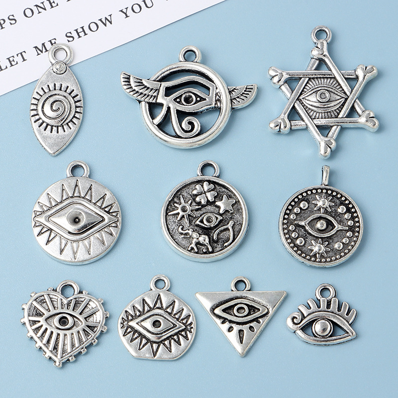 レトロな合金は古い六芒星の目のペンダントをします。