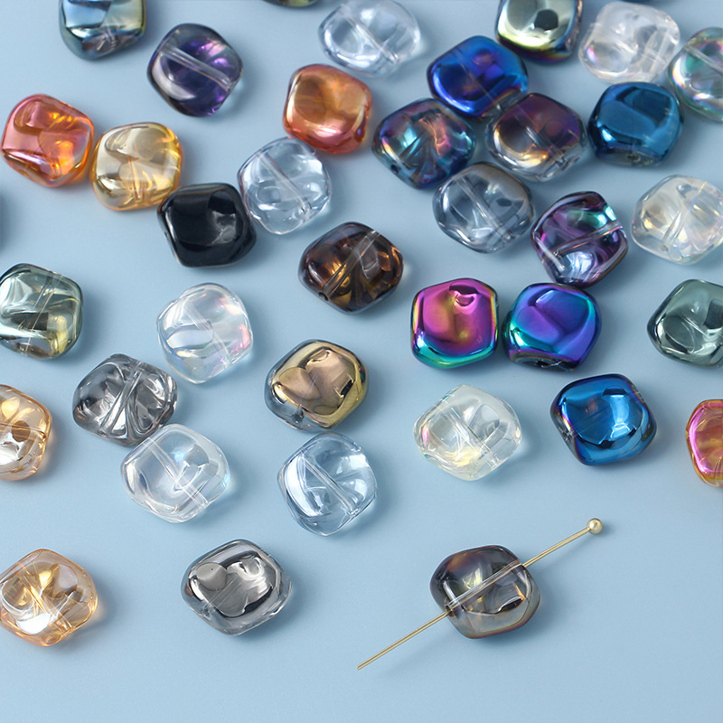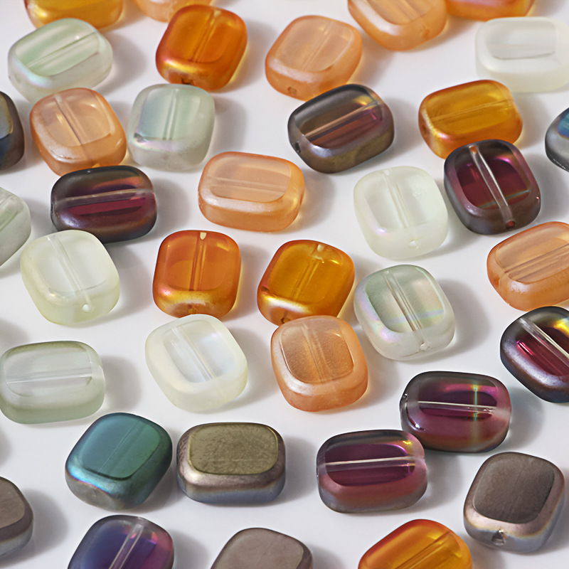 10個/幻彩ガラス正方形波散珠直穴ビーズdiy手作りビーズネックレス材料部品