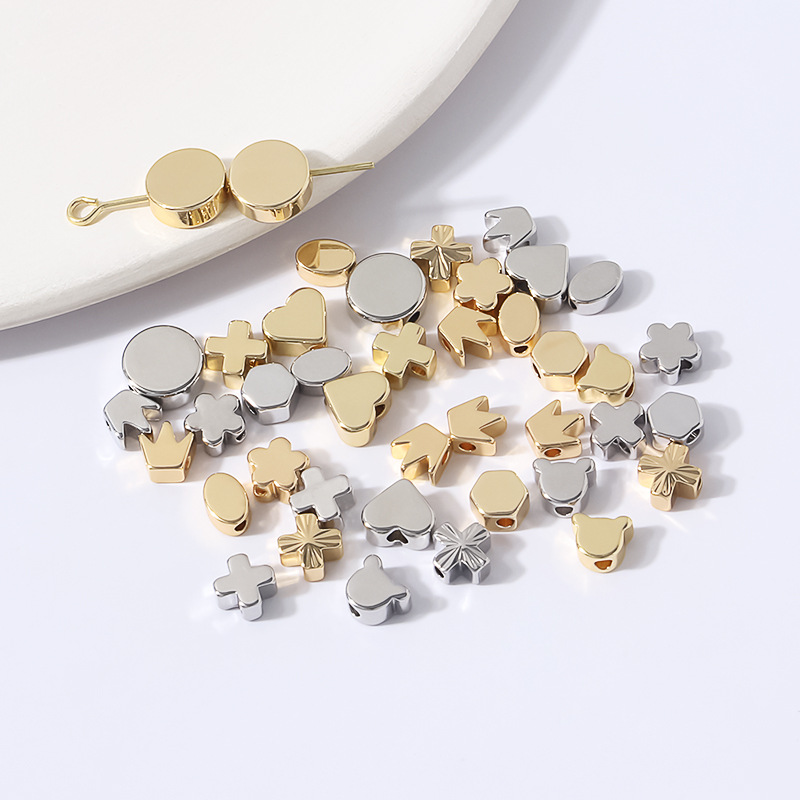 銅メッキ18kスルーホールストレートビーズ愛クラウン円ブレスレットネックレス隔珠散珠diy手作り部品