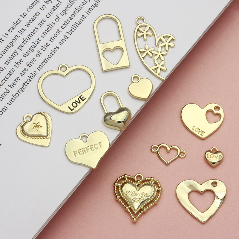 バレンタインレトロ花柄模造パールハート桃ハート合金ペンダントdiy手作りアクセサリーイヤリングアクセサリー材料