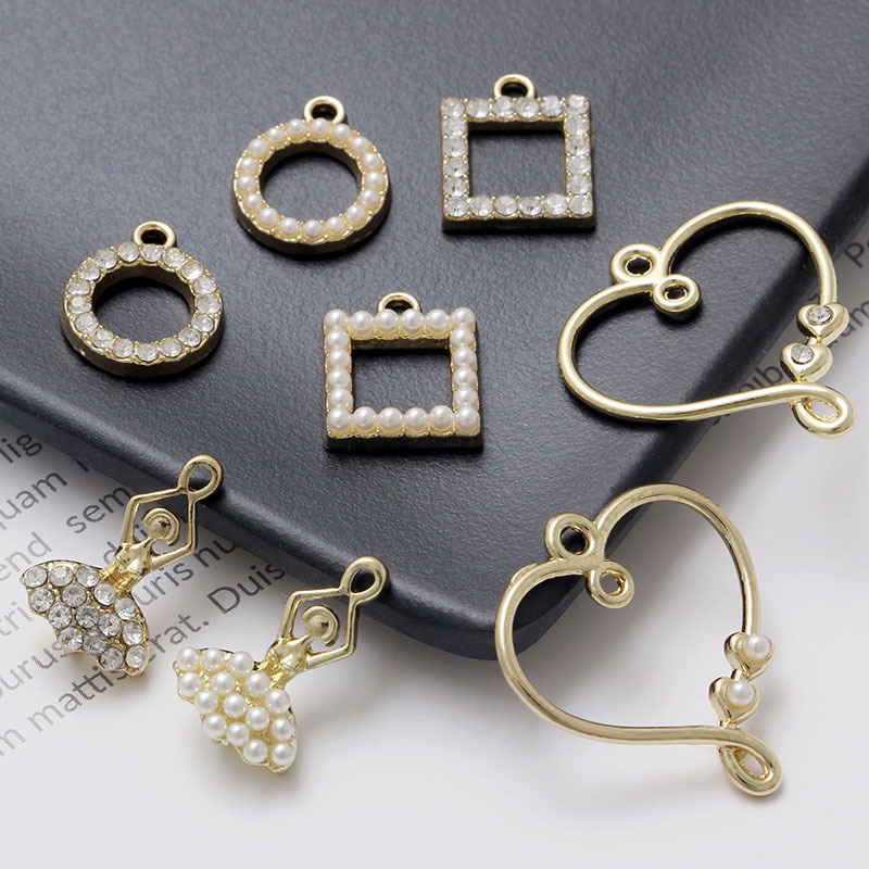 メーカー直販diy手作りアクセサリー部品合金ドリル真珠円形愛耳飾りストラップ材料