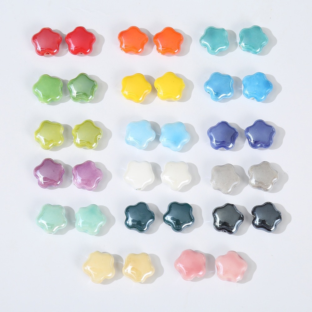 クリーム色の花光沢のあるセラミックビーズ手作り diy ルースビーズ素材ブレスレットネックレス装飾ジュエリーアクセサリー