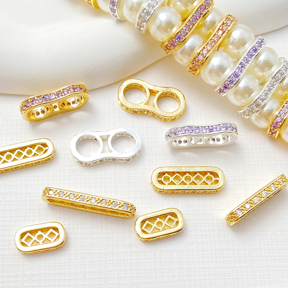 保色銅金メッキ多孔ジルコン片多孔楕円形真珠のブレスレットのネックレスのスペーサーdiy材料