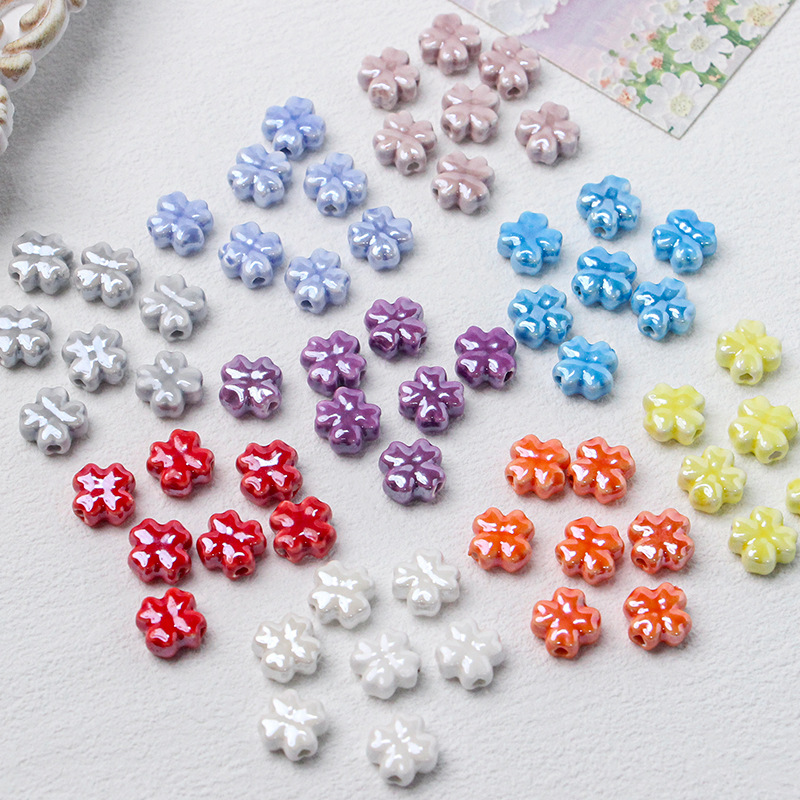 6*12mm【小清新】マカロン色陶磁器四葉草diyブレスレットネックレス耳飾り材料