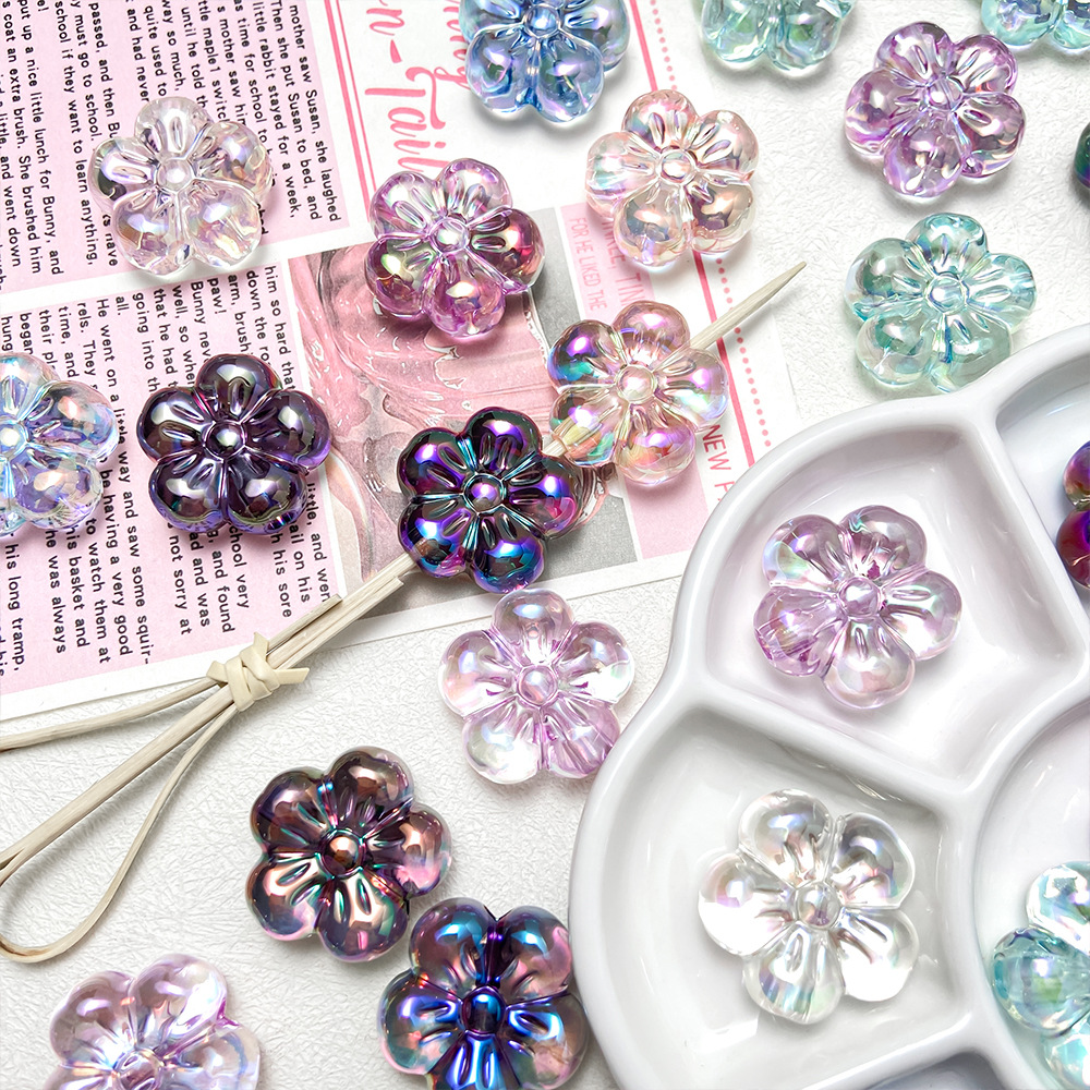 カラフルなアクリル花ビーズ散珠アクセサリー手作りdiy材料自作ブレスレットネックレス携帯チェーンビーズ