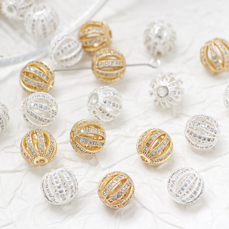 18kバッグ金微入れジルコニウム通孔透かし彫りスイカボール10mm手作りビーズ材料diy手串ビーズ鎖