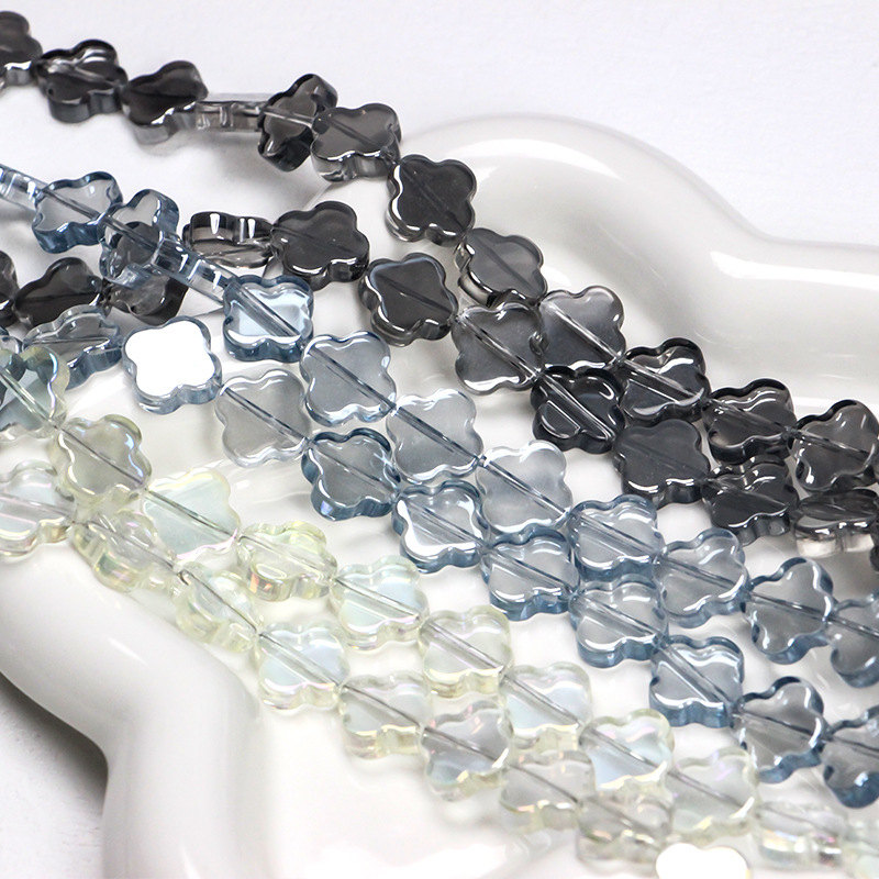 シンプル高級四葉草氷透極光幻彩瑠璃模造チェコビーズdiy手作りビーズ材料部品