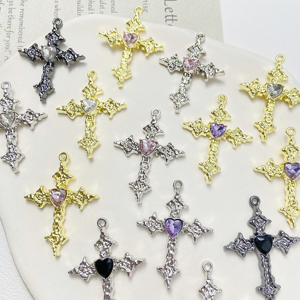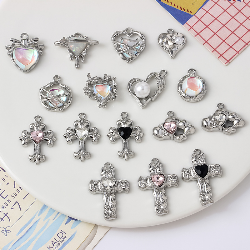 甘いクールな少女の暗黒y 2kのしわの愛の十字の独特な大衆のペンダントdiyの手の材料のネックレスの耳の装飾品