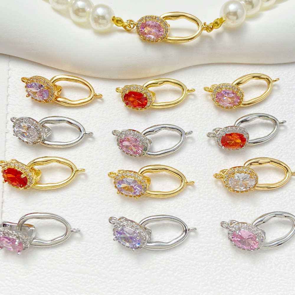 18kの保色の包みの金はジルコニウムの楕円の真珠を入れて接続します。