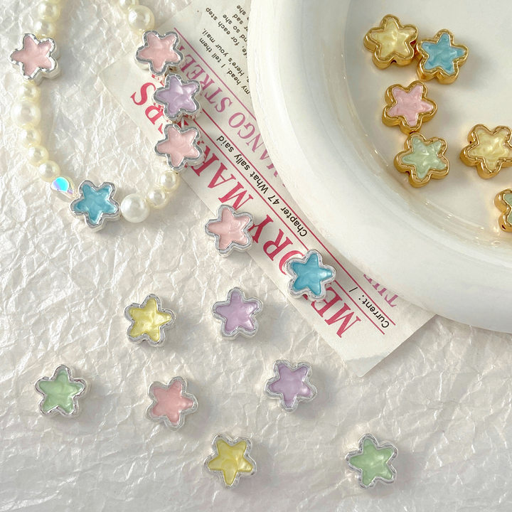 金銀辺波紋カラー五角星滴油合金diy手作りビーズアクセサリー携帯電話チェーン
