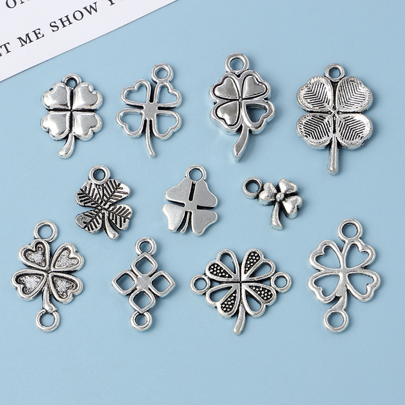 レトロな合金の四つ葉のクローバーの透かし彫りdiyの手作りのネックレスのブレスレットのイヤリングの鍵のペンダントの部品のペンダントの材料