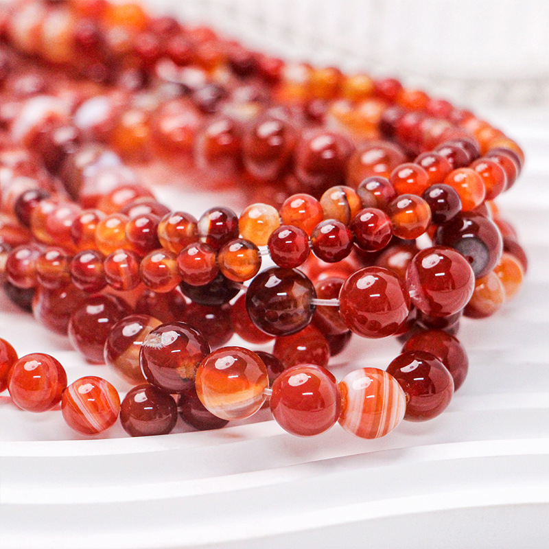 【酔紅化粧】赤ストライプ天然石ビーズdiy手作りビーズブレスレットネックレス耳飾り