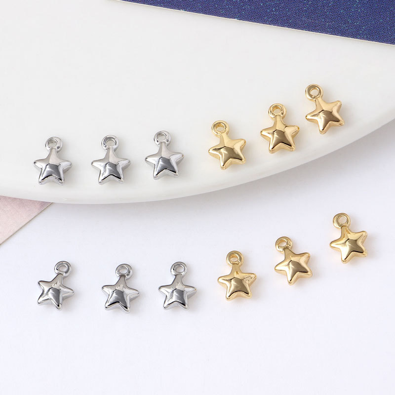 銅メッキ18k保色亮面立体五角星ペンダント手作りdiyブレスレットネックレスアクセサリー