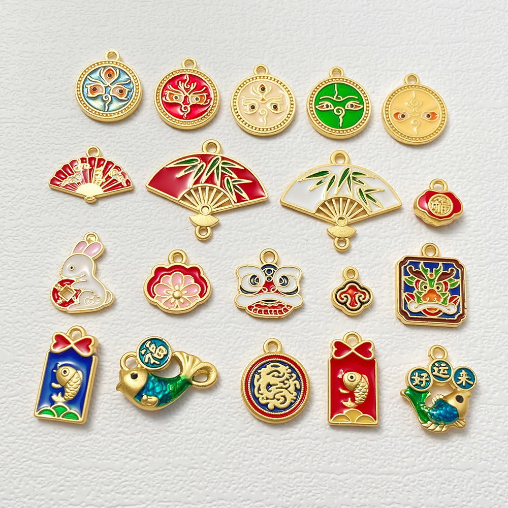 中国風沙金覚醒獅子竹葉扇子福袋祥雲小ペンダントdiy滴油ブレスレットネックレス手串耳飾り