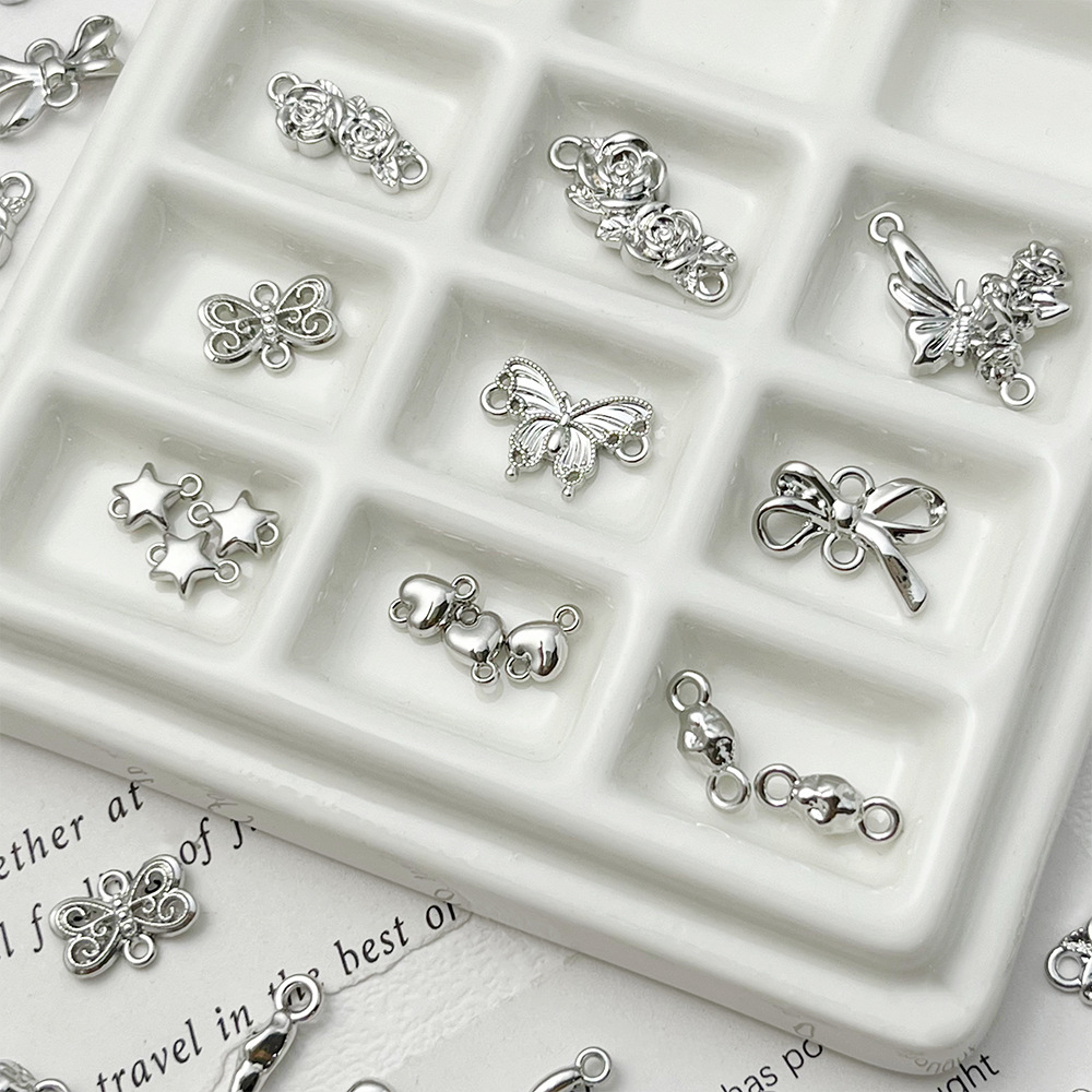 シンプルなins風双吊蝶バラ合金ペンダントネックレス耳飾りdiy手作りアクセサリー白K色