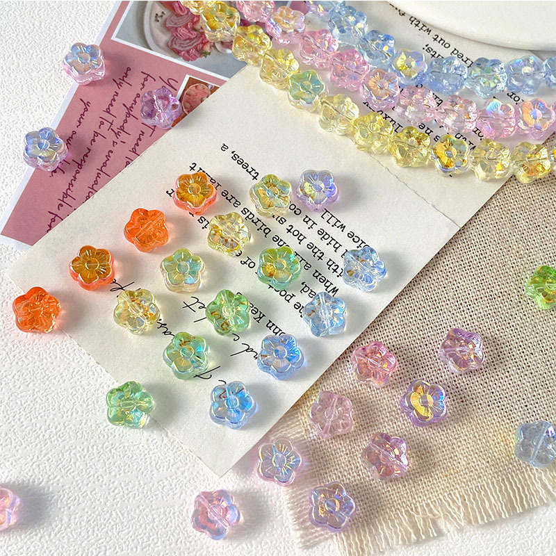 カラフルな半透明の桃の花の五弁の花手作りビーズ diy ブレスレット携帯電話チェーンヘアアクセサリー小物