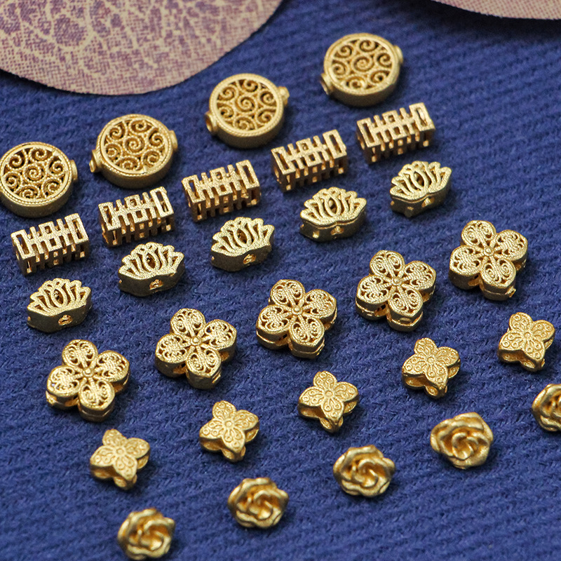 古法金18k保色芝空両面隔珠花托桶珠diyブレスレットネックレス手串手作り材料部品