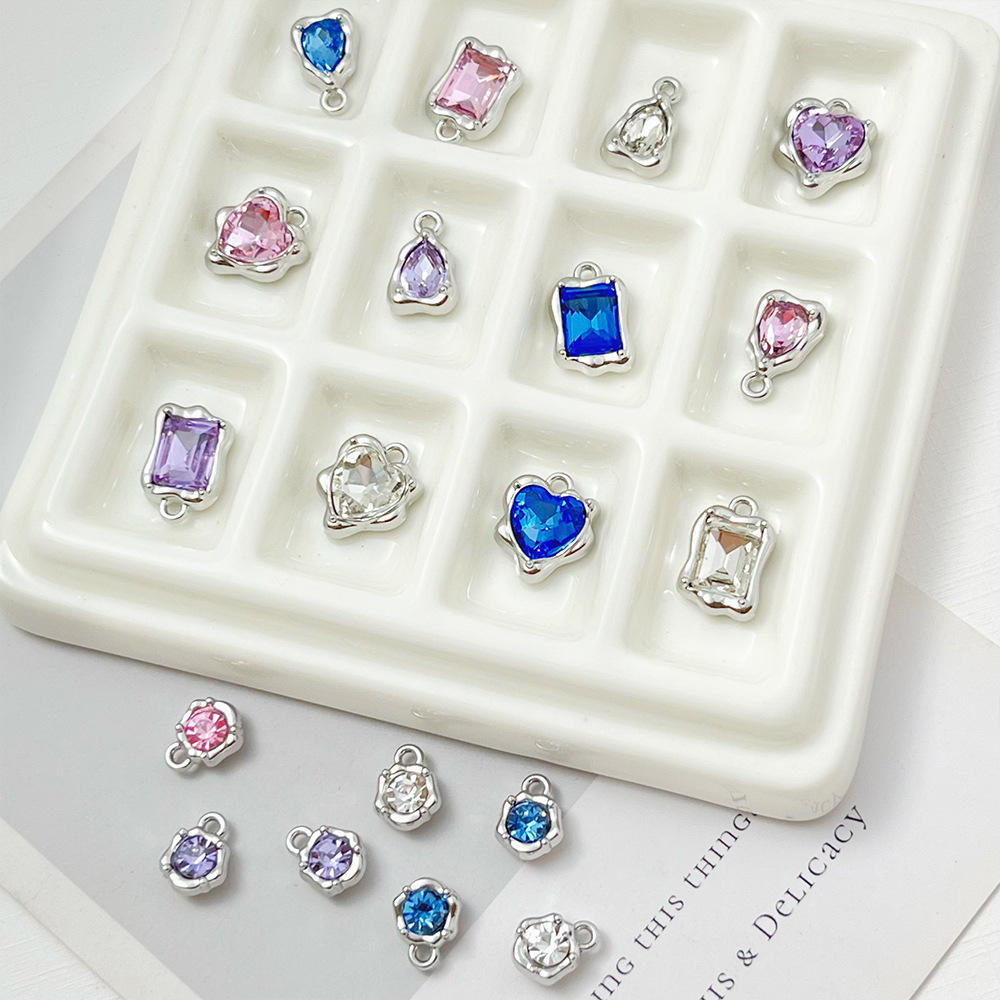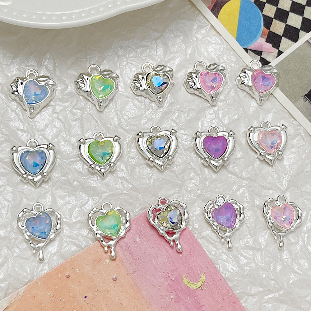 甘いクールな少女ハート型ガラス精品合金ペンダントアクセサリーdiyネックレスブレスレット手作り材料ペンダント白k色