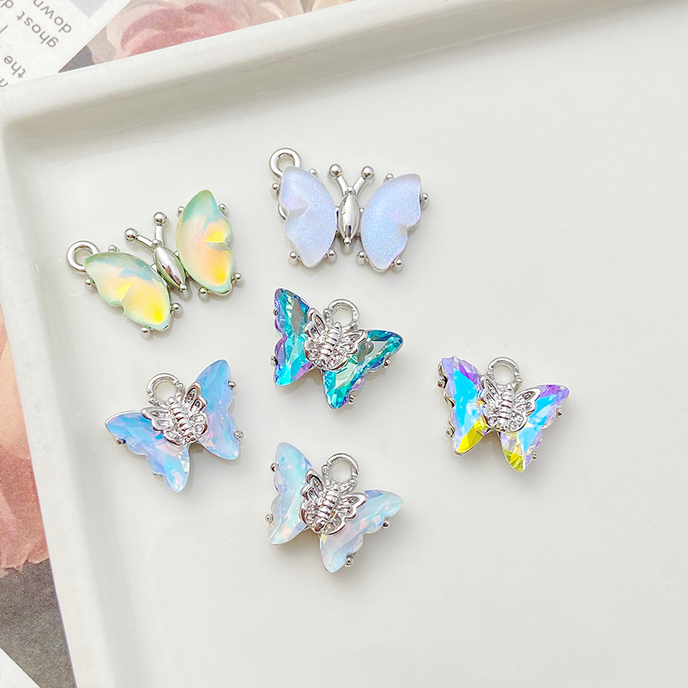 豪華なキラキラ光る蝶合金アクセサリーペンダントdiyネックレスイヤリングアクセサリー手作り材料