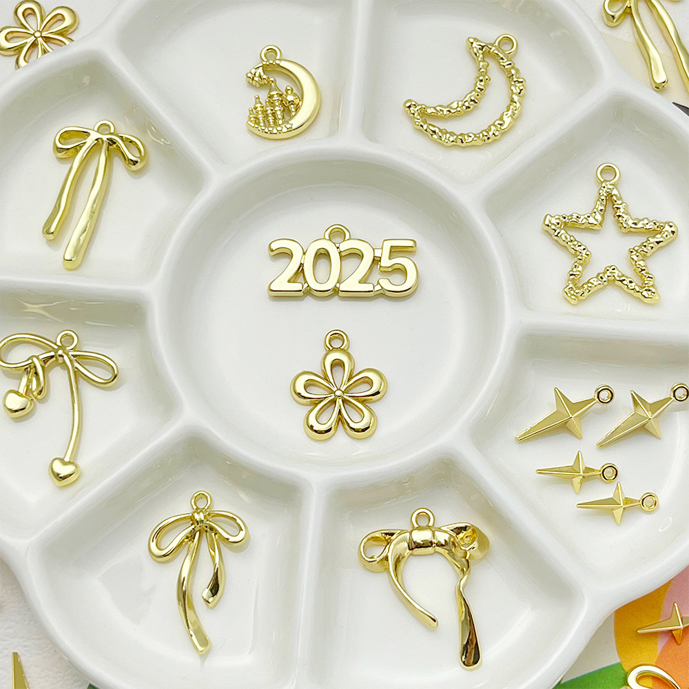 甘いクールな風の蝶結びの透かし彫りの月の合金のペンダントの手作りの組み合わせの材料のdiyのネックレスの耳飾りの部品の金色