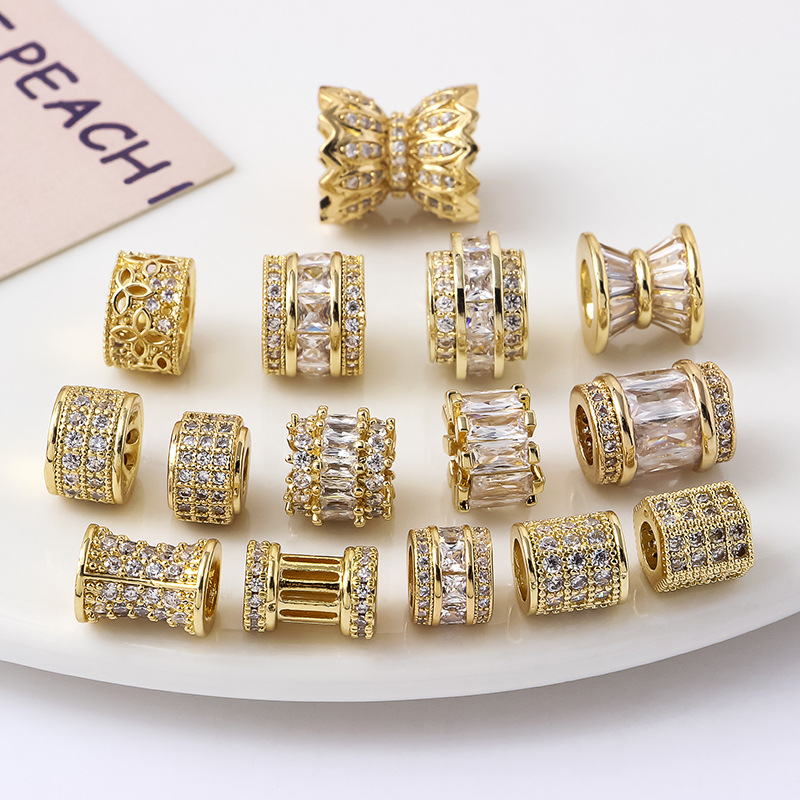 銅メッキ18k保色マイクロジルコン路通小蛮腰桶珠隔珠ペンダント手作りアクセサリーdiy
