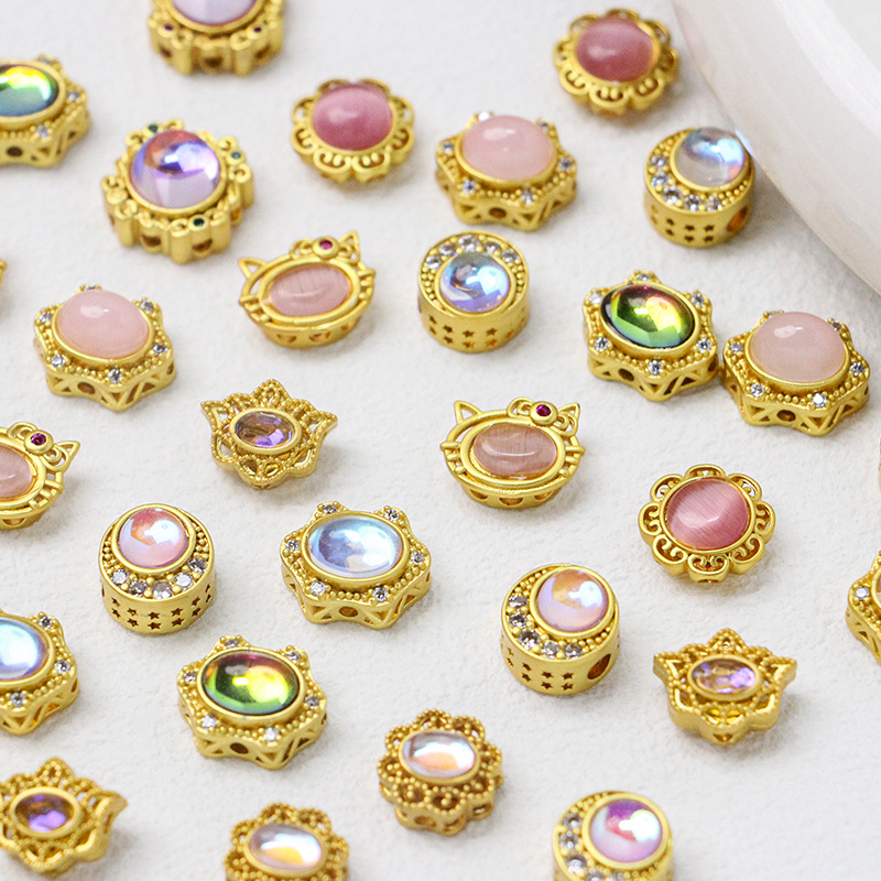 【猫眼石】保色古法沙金異形部品DIY編みブレスレットネックレスビーズイヤリングアクセサリー