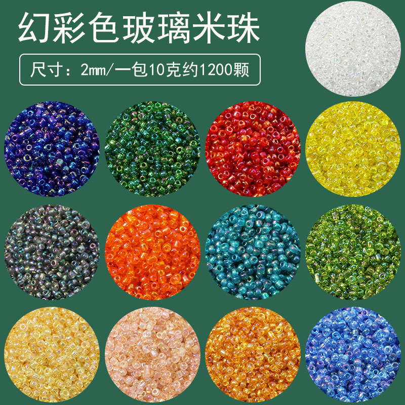 約1200個10グラム約2mm幻色ガラス小米珠ビーズdiy手作りアクセサリーネックレス部品材料