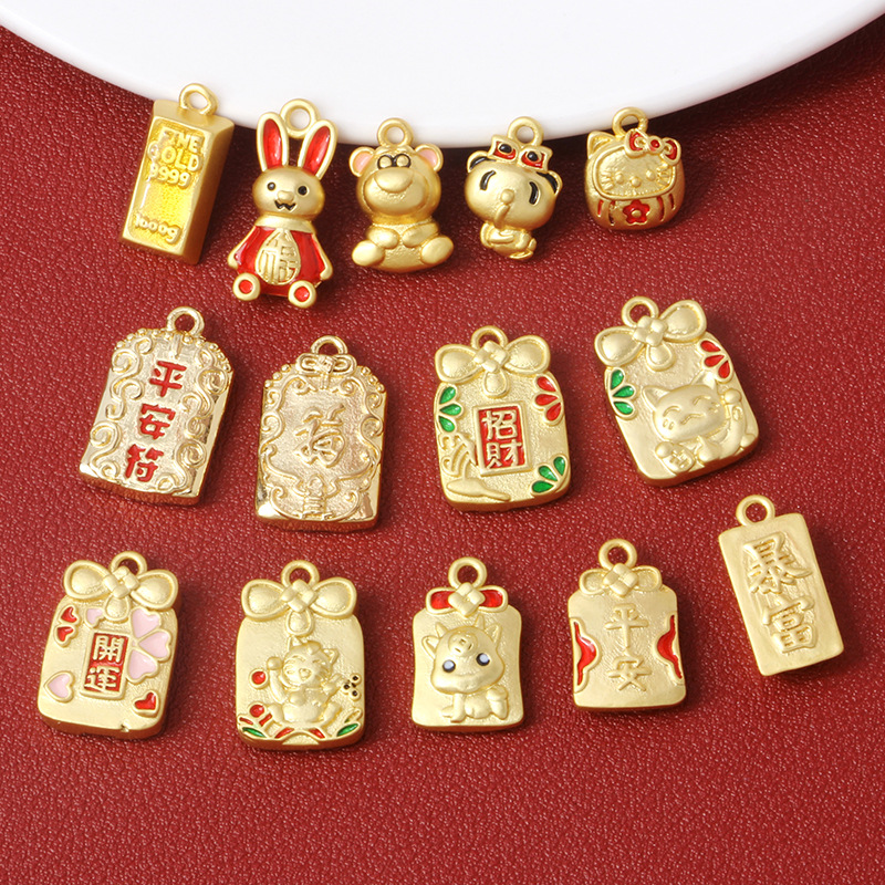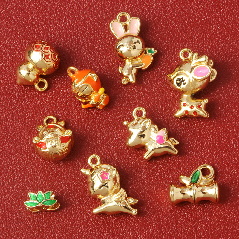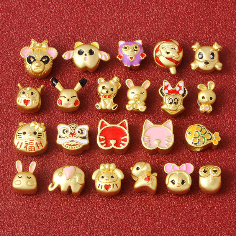銅金メッキ沙金猫小動物シリーズペンダントdiy手作りネックレスブレスレット赤紐ビーズ部品材料