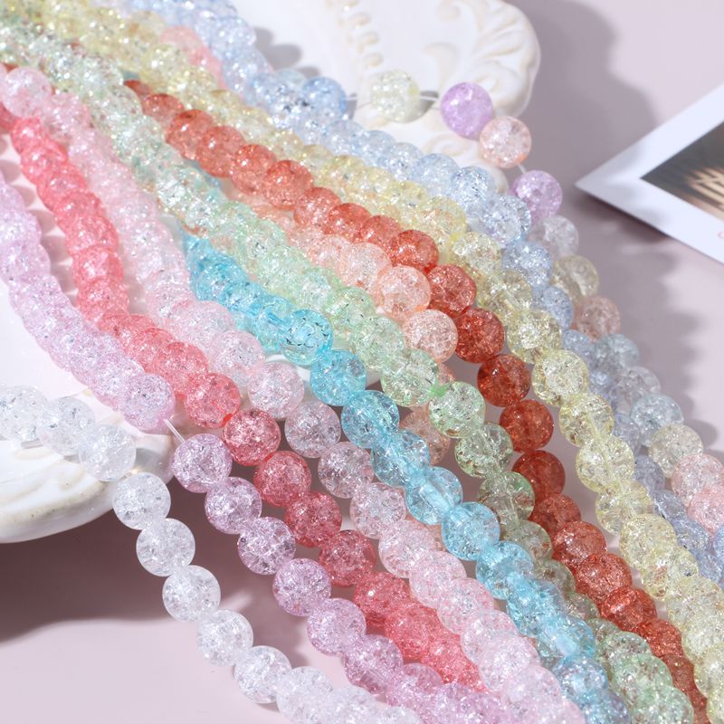 水晶爆裂模様円形珠直孔ガラス散珠手作りdiy耳飾りネックレスブレスレットアクセサリー部品
