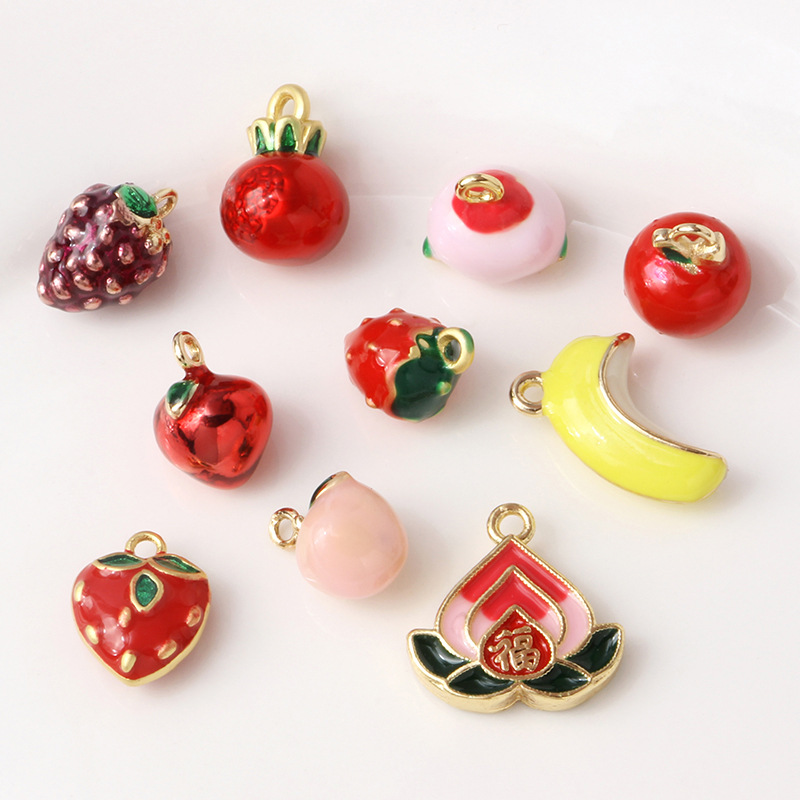銅金メッキ焼青滴油いちご果物シリーズdiy手作りブレスレット鍵ペンダントイヤリングヘアピン部品