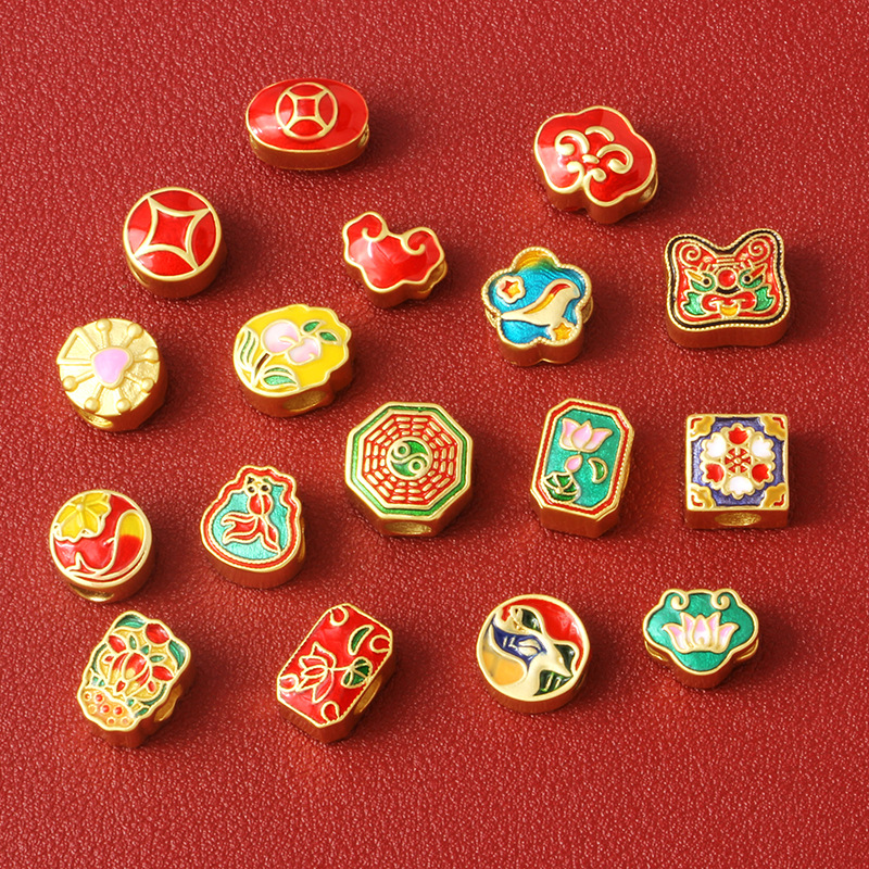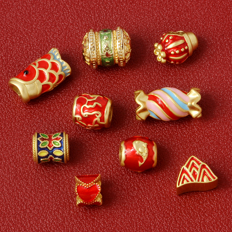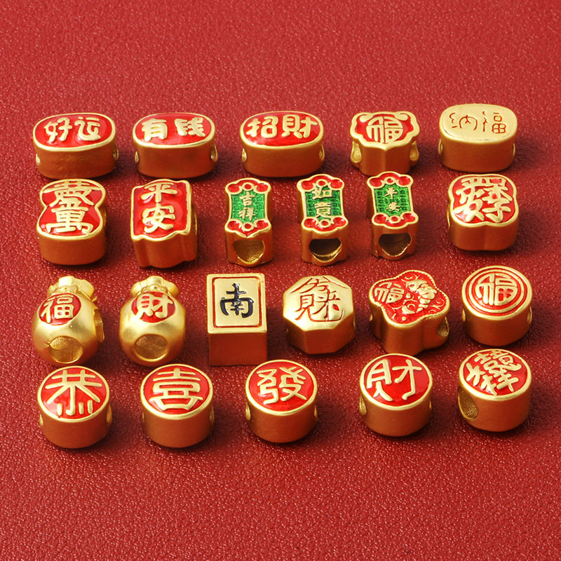 古法沙金転運珠平安錠紅箱隔珠diy編み赤縄ビーズブレスレットネックレス部品
