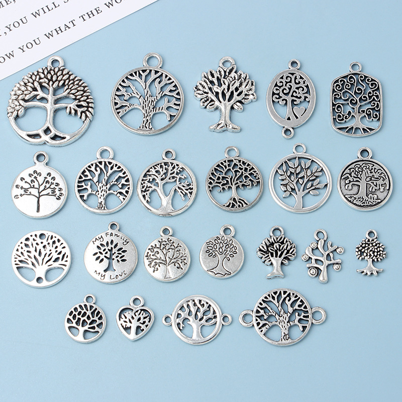 Diy合金アクセサリーアクセサリーレトロ生命樹智慧樹円形透かし彫りネックレスペンダント耳飾りペンダント