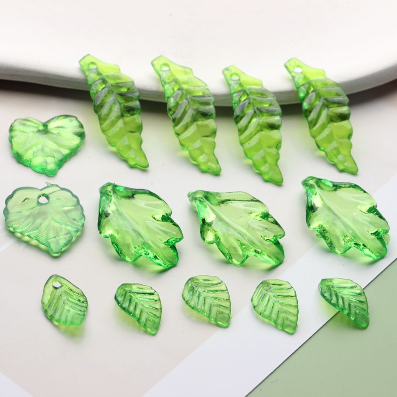 Diy手作り透明アクリル緑葉バラ葉ブレスレットネックレスアクセサリービーズ散珠アクセサリー