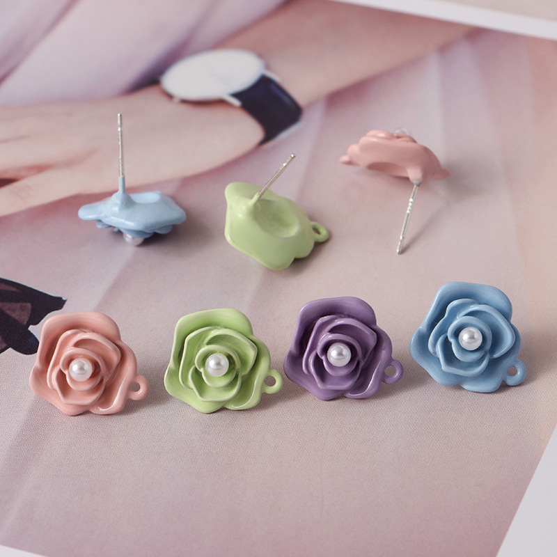 モランディ色の合金のスプレーのバラのイヤリングは925銀の針の新型のdiyの手作りの耳の穴の耳飾りの部品をまねます。