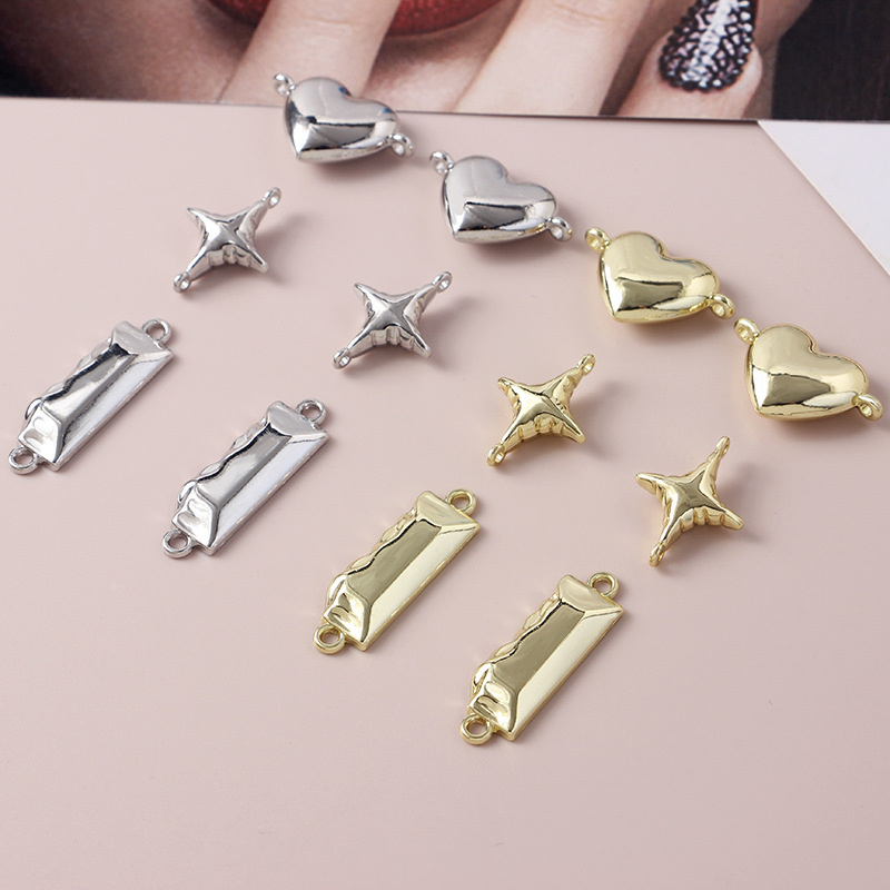 愛四芒星中空光沢面ハート型不規則合金ペンダントネックレスブレスレット飾りdiyアクセサリー材料