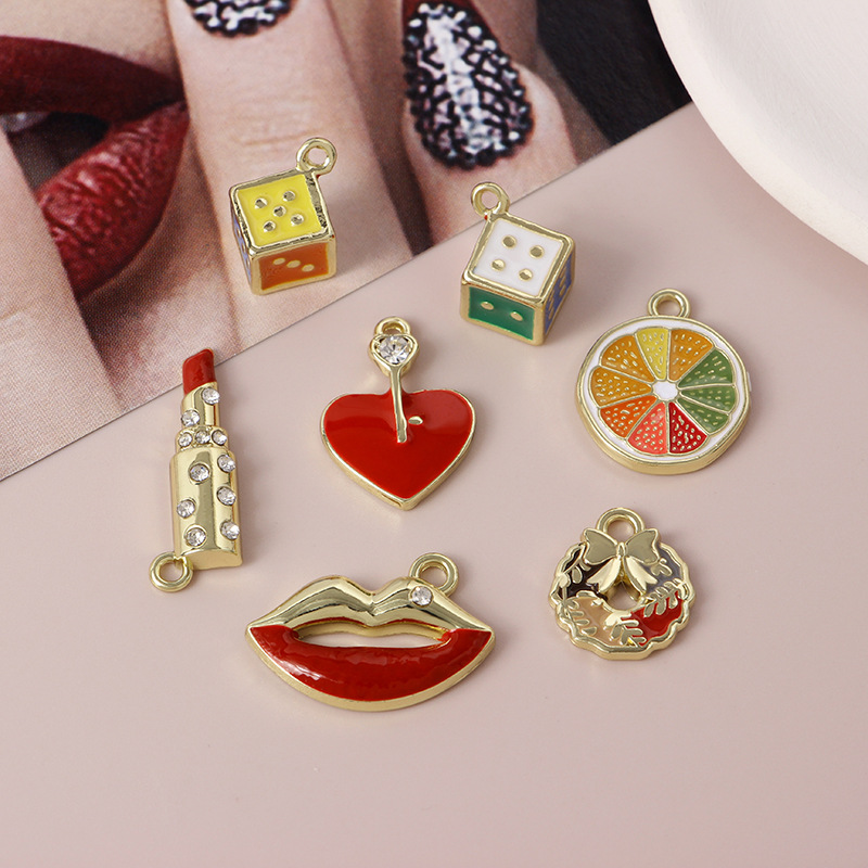 多彩でかわいい口紅の赤い唇のサイコロの合金のペンダントdiyの手作りのビーズのブレスレットのネックレスのアクセサリーの材料の部品