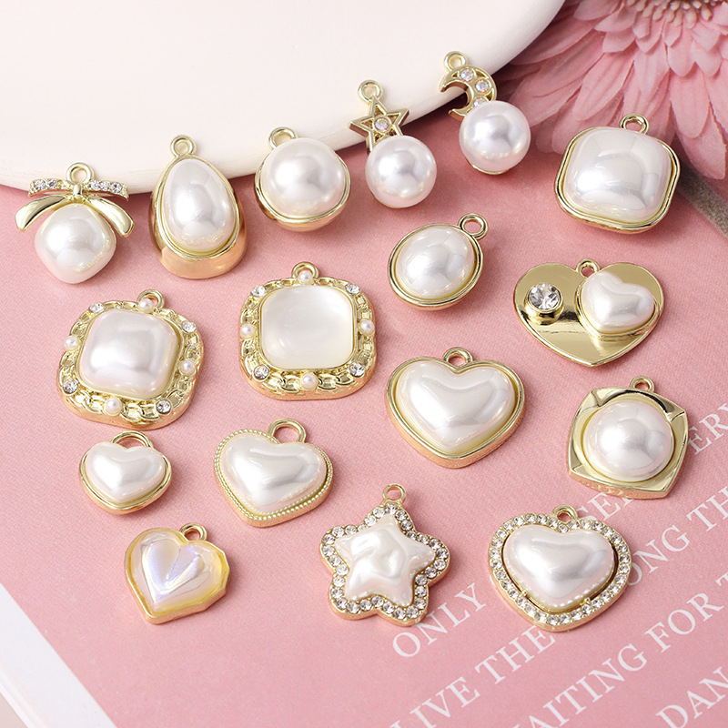 ドリル真珠愛五角星王冠ベアー合金イヤリングネックレスペンダント手作りdiyアクセサリー部品