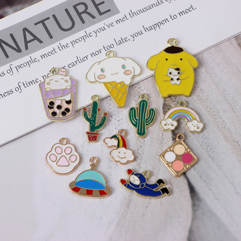 玉桂犬柯基漫画集合合金滴油カラーペンダントdiy耳飾りブレスレットキーホルダー部品材料