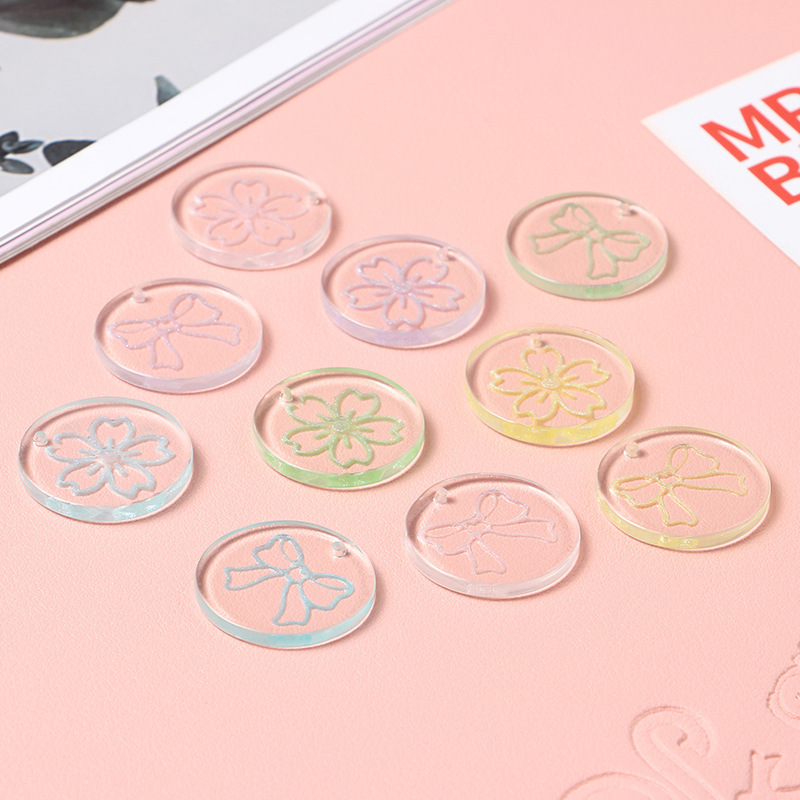 清新で透明な五弁の花の蝶結びのゴムの丸い札のペンダントのdiyの手作りの耳飾りのネックレスの部品の材料