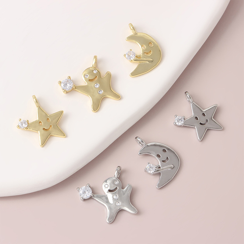 18k包みの金の色の笑顔の表情はジルコンの星の月のペンダントを入れます。