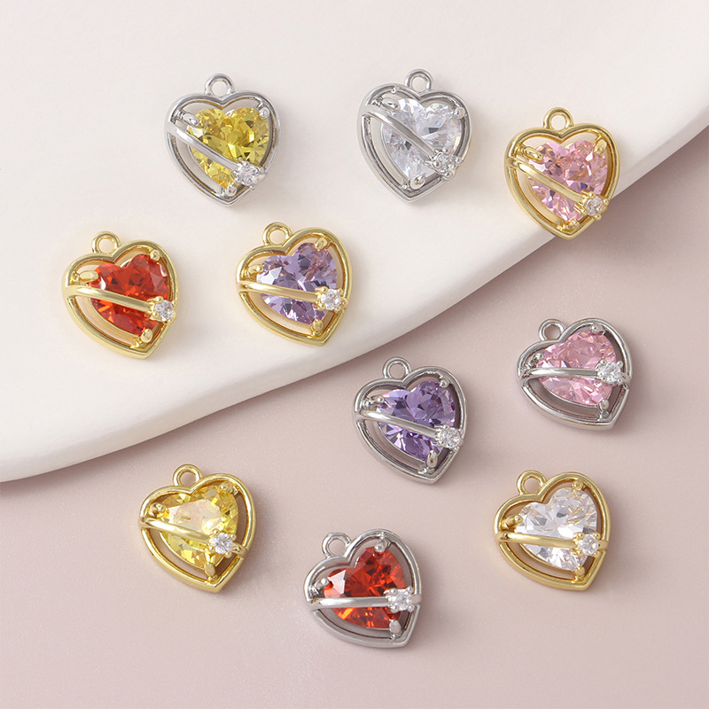 18kメッキの本物の金の小さい大衆の設計の桃の心はジルコンの愛のペンダントのdiyのネックレスのブレスレットの耳飾りの材料の部品を入れます。