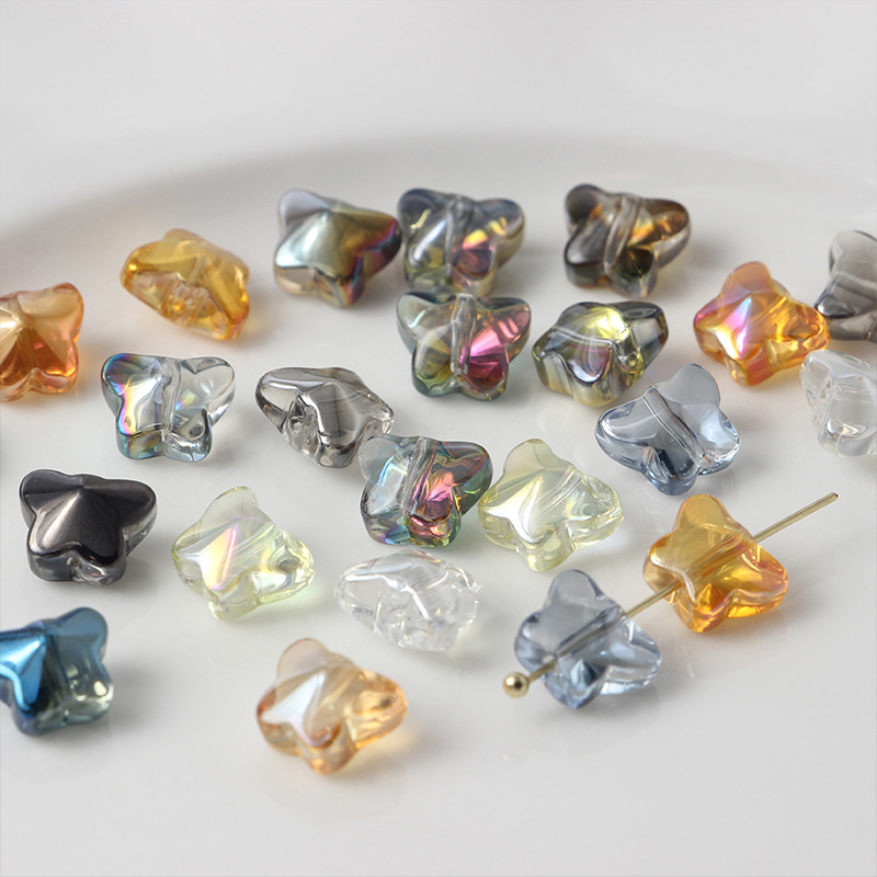 10個/幻彩ガラス小蝶散珠直孔ビーズdiy手作りビーズネックレス材料部品