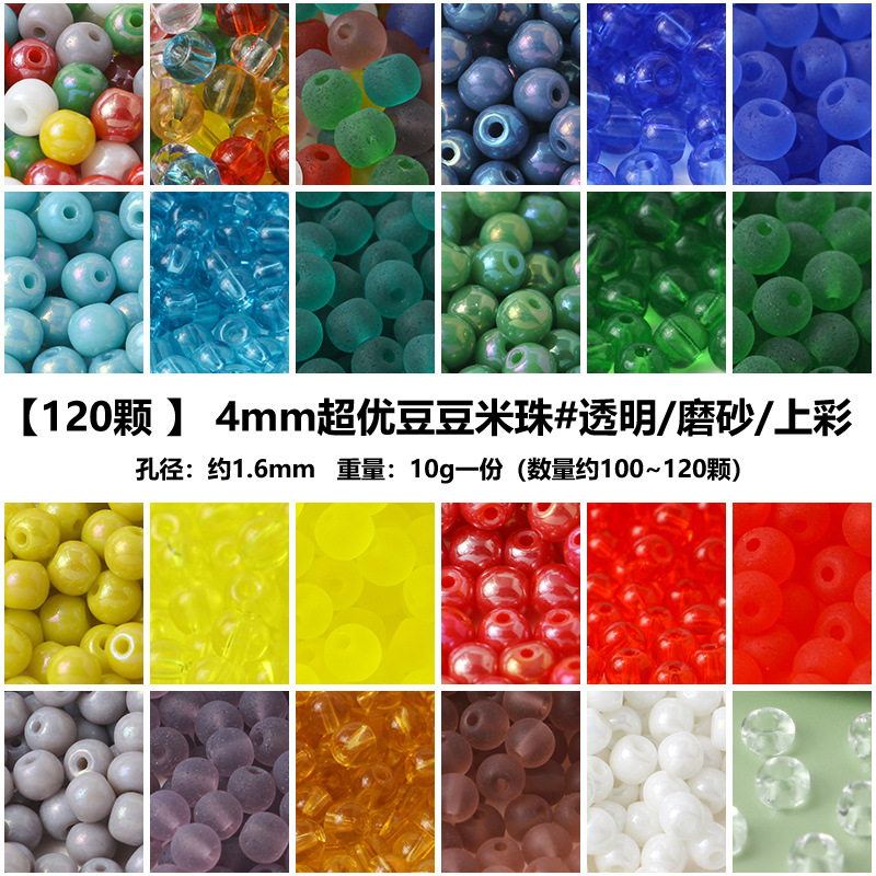10グラム/4mm超優豆実色亜光ガラス米珠散珠diy手作りビーズブレスレット部品材料
