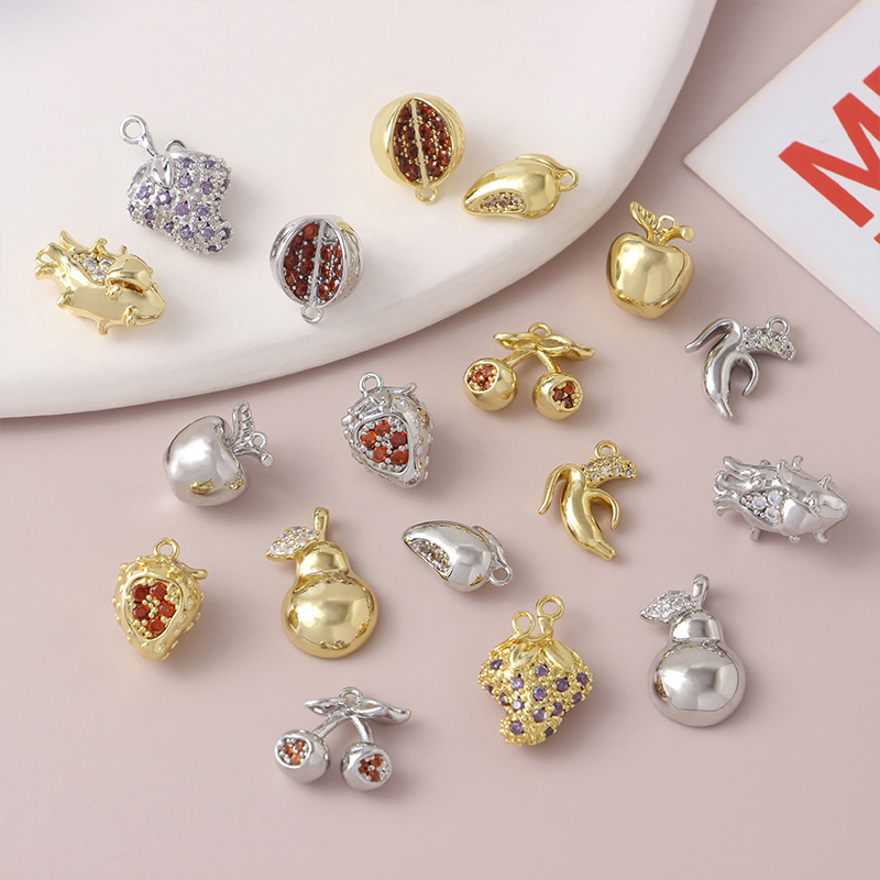 18kメッキ真金保色果物シリーズにジルコンを入れたペンダントザクロ蓮スイカ殷桃いちご材料部品