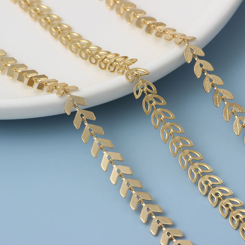 18k包金保色木の葉散鎖手鎖飛行機透かし柳葉耳飾り部品diy手作り材料