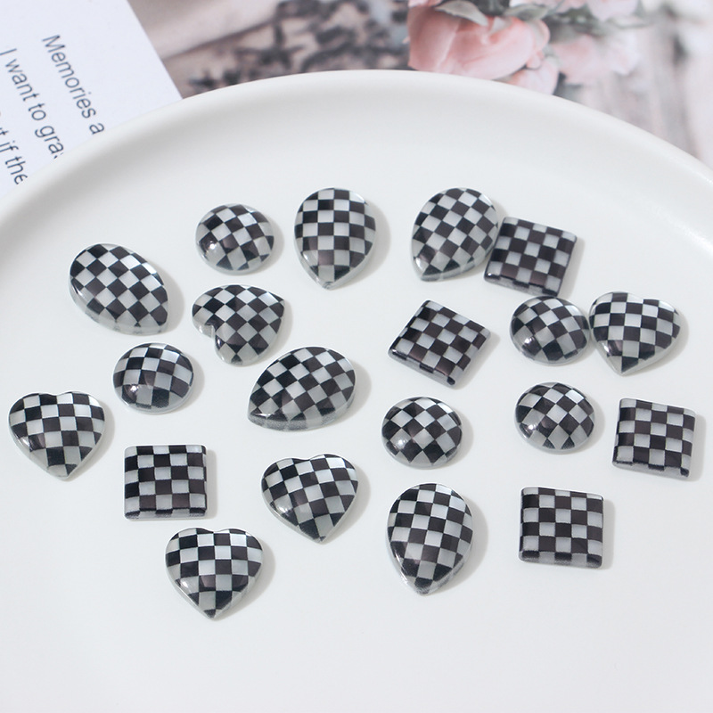 レトロな白黒の格子の円形の四角形の愛の水滴の樹脂は手を貼ってdiy携帯電話のアクセサリの部品の材料を作ります。