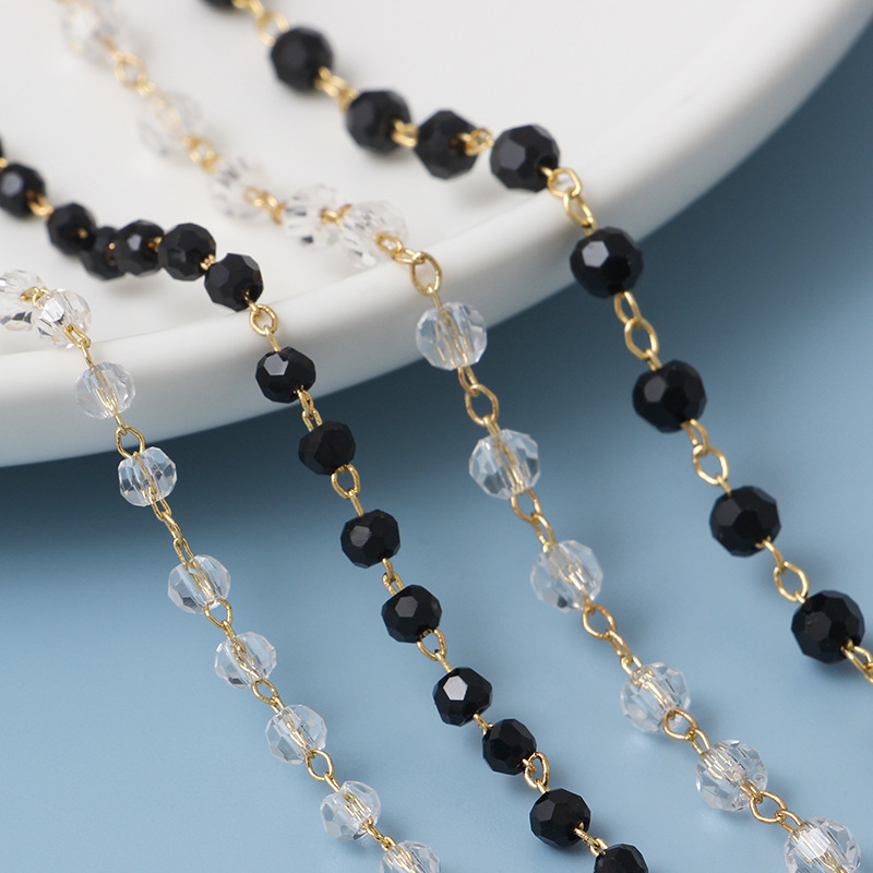 ビーズ水晶保色チェーン18k包金メッキ真金手作りチェーンdiy製ブレスレットネックレス耳飾り材料