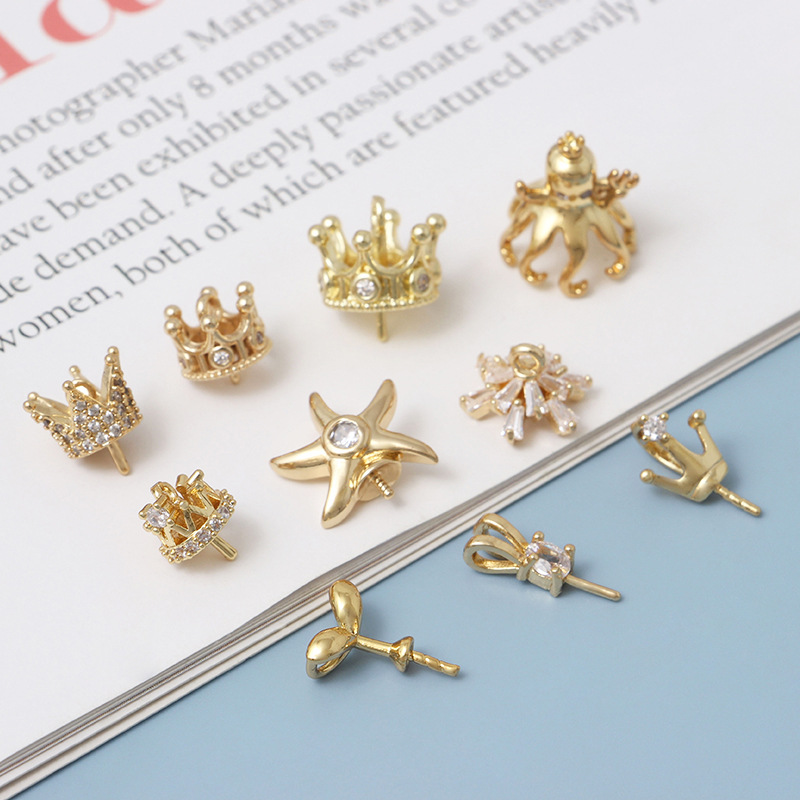 真の金の電気めっきの阿翻る銅のクラウンの人の魚のしっぽの小さい翼は針のdiyのアクセサリのイヤリングの真珠の装飾の部品を持ちます。