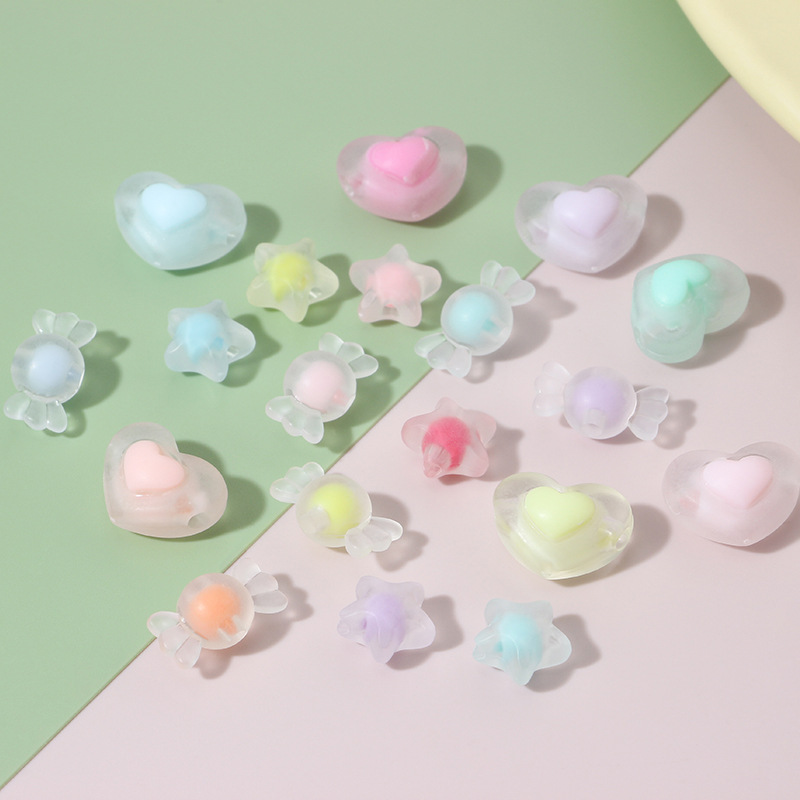 アクリルつや消しストレート穴キャンディー愛星ビーズブレスレットイヤリング材料子供の頭ひも皮筋部品