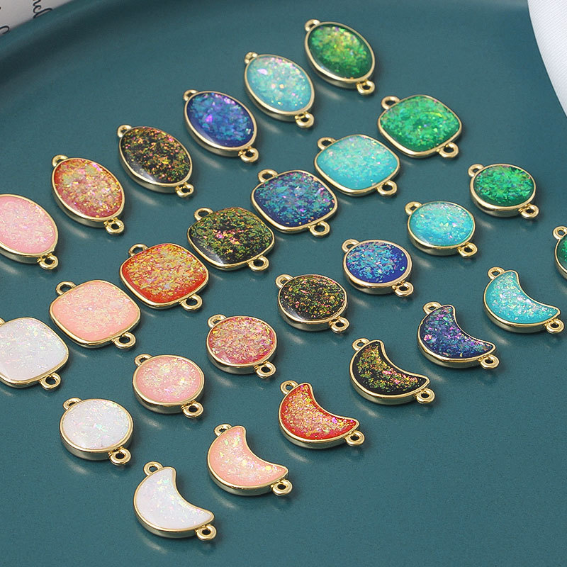 銅の縁の月の四角形は欧泊石の真の金のペンダントの欧米のブレスレットのイヤリングの材料のdiyのアクセサリの部品をまねます。